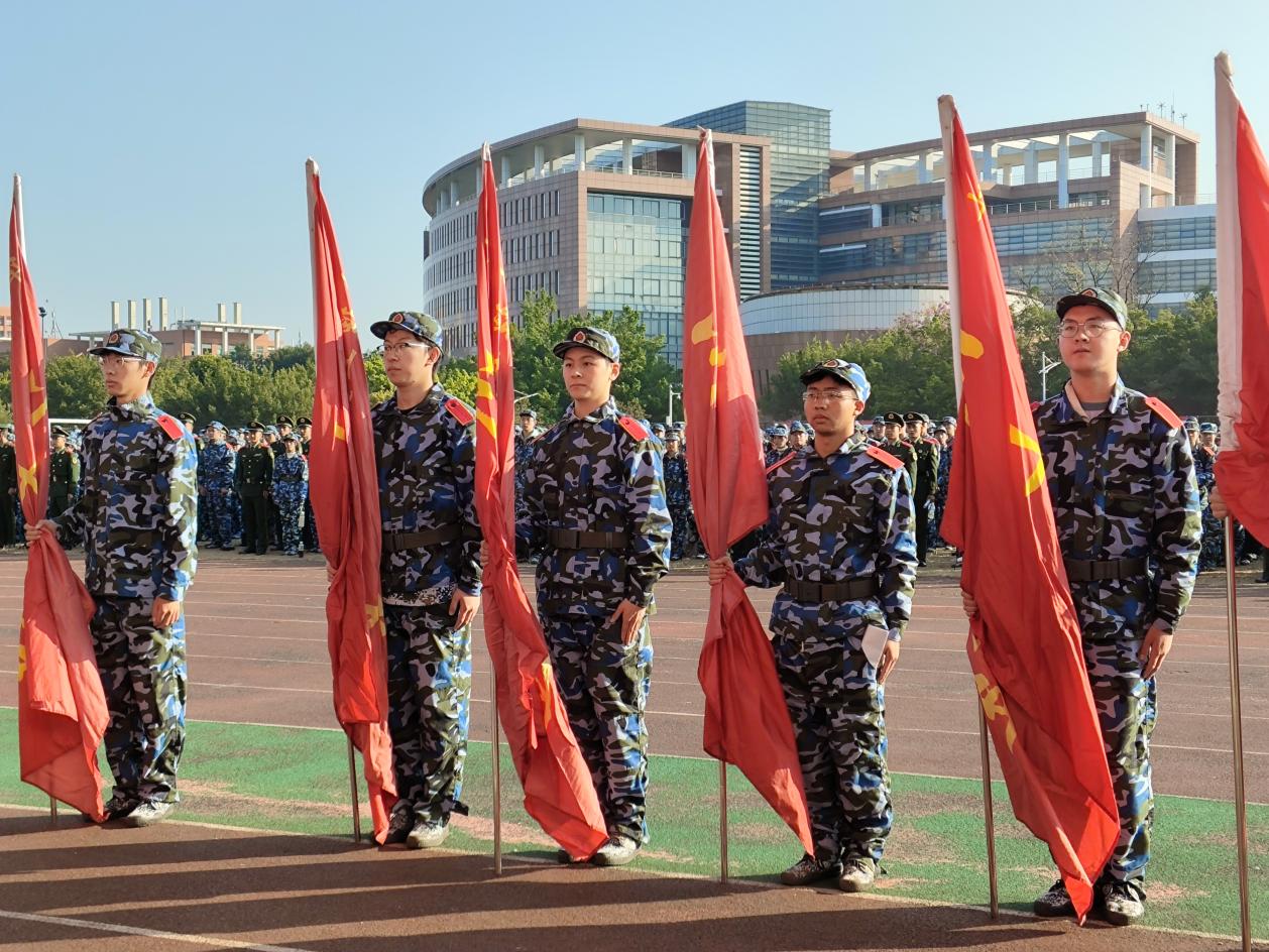 田径场上,军训开幕式简洁而庄重。连旗授予仪式顺利举行,鲜红的旗帜被郑重交到三十二连外院代表手中,随后开幕指令正式下达,这场属于青春的磨砺之旅就此开启。