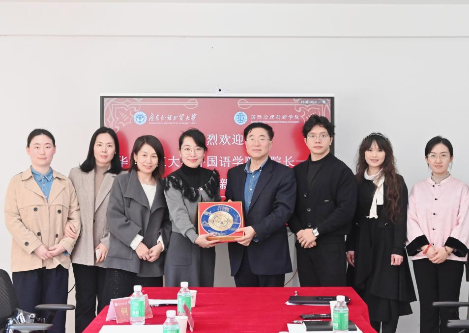 1月13日,我院副院长战双鹃率队赴广东外语外贸大学国际治理创新学院开展专题调研。学院科研基地管理中心主任陈艳艳、国际组织系主任王玉静及骨干教师何文君、马雁飞等随行参访。广东外语外贸大学国际治理创新学院院长赵龙跃接待调研团并主持座谈会,该院办公室主任李悦涵、骨干教师何彦晖等参加交流。本次调研旨在对标兄弟院校先进经验,进一步拓宽工作思路,推动我院国际组织人才培养及学科建设高质量发展。