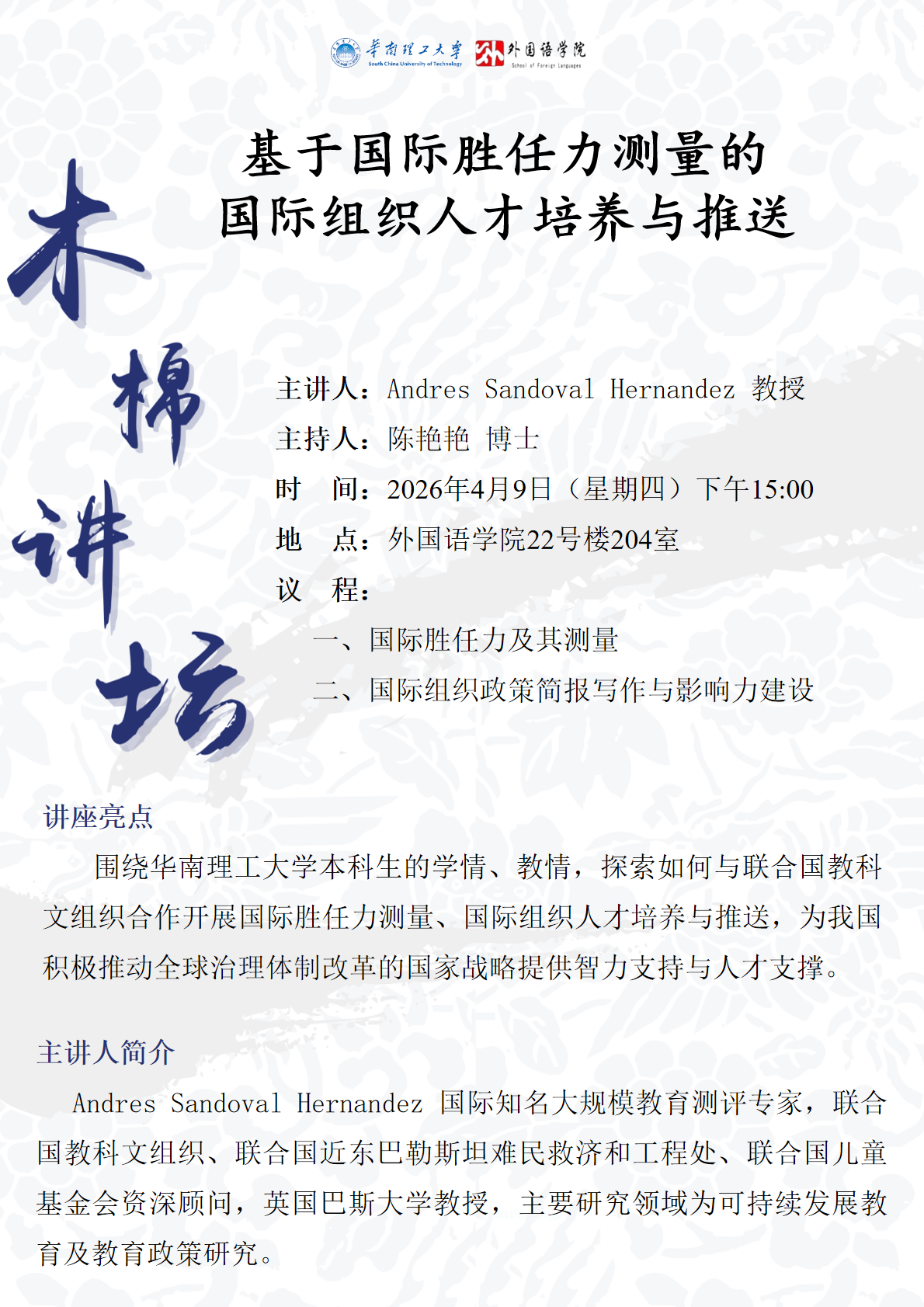 【学术讲座】基于国际胜任力测量的国际组织人才培养与推送