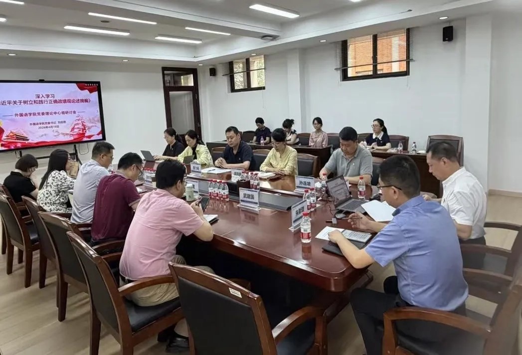 4月16日下午,外国语学院党委在22号楼204会议室召开树立和践行正确政绩观学习教育读书班专题研讨会。学院全体领导班子、党委理论学习中心组成员,党支部书记、系部主任参加了学习会,学校督导组组长孙连坡、组员董力瑞莅临指导。会议由学院党委书记刘应思主持。