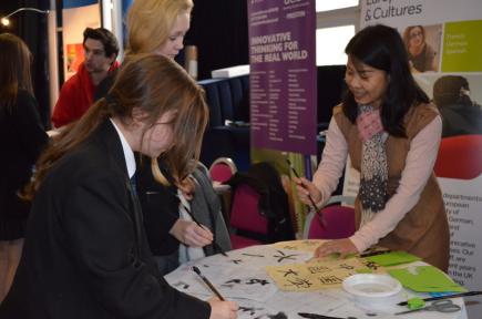 此次活动从早上9点一直持续到下午6点,受到了学生和家长的一致好评。参加活动的中学生们都处于要为今后上大学所读专业的需要而作出规划的阶段,因此他们现在计划选读的专业将直接关系到未来从事的职业。这次兰卡斯特大学孔子学院带去的课程宣传册、教材和文化介绍书籍,以及组织的书法体验、剪纸活动,不仅生动地为来访者提供了了解汉语和中国文化的机会,也帮助他们意识到,学习汉语,修读中国文化课程将会扩大他们未来职业范围,是一个与时俱进的良好选择。(图/文兰卡斯特大学孔子学院朱雅洁)