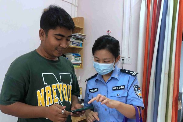 座谈会上,同学们畅所欲言,纷纷感谢中国政府和学校在平时特别是疫情期间对学生的关心和爱护,表示中国是目前世界上最安全的地方,为能在中国学习和生活感到幸运。潘俊副院长认真倾听了同学们提出的具体问题和实际困难,以及在如何开展特色校园文化活动、改善学习生活环境等方面的意见与建议,并作了详尽、耐心的解答。派出所警官结合平时案例详细介绍了常见的电信网络诈骗手段,指导学生下载和安装“国家反诈中心”APP,并有针对性地介绍了我国出入境管理法关于留学生在华签证的相关规定,希望留学生们认真做好个人防护,尽快完成新冠疫苗接种,平安生活、快乐学习。