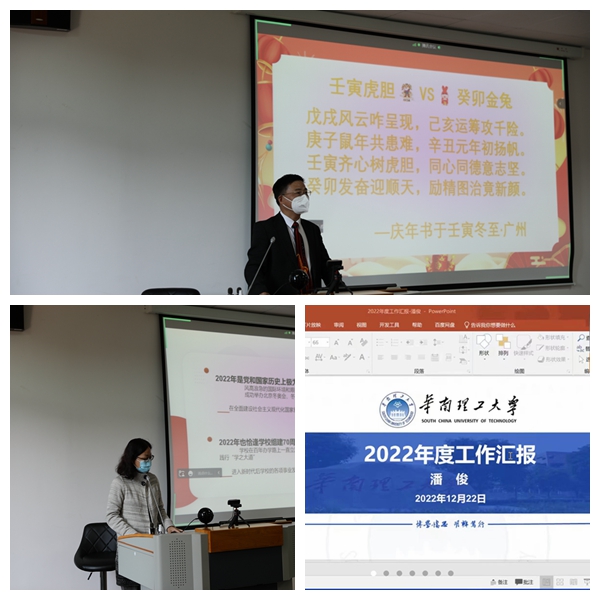 接着,王院长作2022年度个人工作总结,胡贵平副院长和潘俊副院长分别对分管工作作了总结汇报,分析新形势下,招生工作和留学生管理工作面临的挑战,并提出下一年的工作计划。