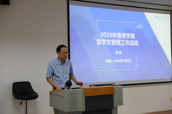 随后,王庆年院长针对全院工作做总结报告。他对学院本学期在招生、人才培养、学生管理等各方面的工作表示肯定。他指出,在百年未有之大变局的背景下,全球面临着前所未有的挑战与机遇。我们要勇于克服困难,以开放的心态和创新的思维,积极探索新的合作模式,深入开发新的资源。王院长对下一步的工作作出如下部署。一是要加强教师的党建和思想政治工作,切实提升教师的政治觉悟;二是要严格按照规章制度行事,确保工作纪律的良好执行;三是要注重理论与实践的紧密结合,将这一原则贯彻落实到具体工作中,不断推进提质增效。