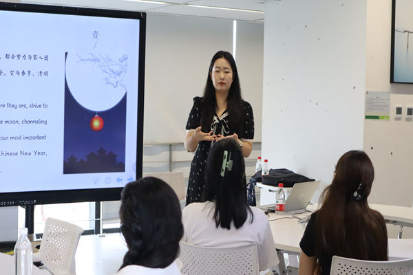 活动中,汉语教研室李海书老师为同学们生动讲述了中秋节的悠久历史与典故,深入浅出地阐释了中秋节所蕴含的团圆、思念等文化内涵。同学们听得津津有味,对中秋节背后的文化意义有了更为立体的认知。