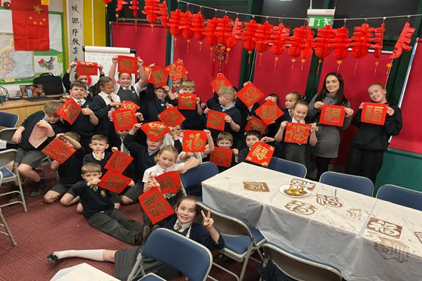 在课堂上,教师们特别策划了一期中国“福”字主题文化活动,向学生讲解了“福”字的文化内涵,教授“福到了”这一吉祥表达,并介绍了中国春节期间倒贴“福”字所蕴含的美好寓意。随后,学生们亲手体验“福”字拓印,在动手实践中感受中国书法与传统纹样之美。活动结束后,孩子们的拓印作品被精心布置成展览墙,色彩鲜艳、创意十足,吸引了众多师生驻足欣赏,广受好评。