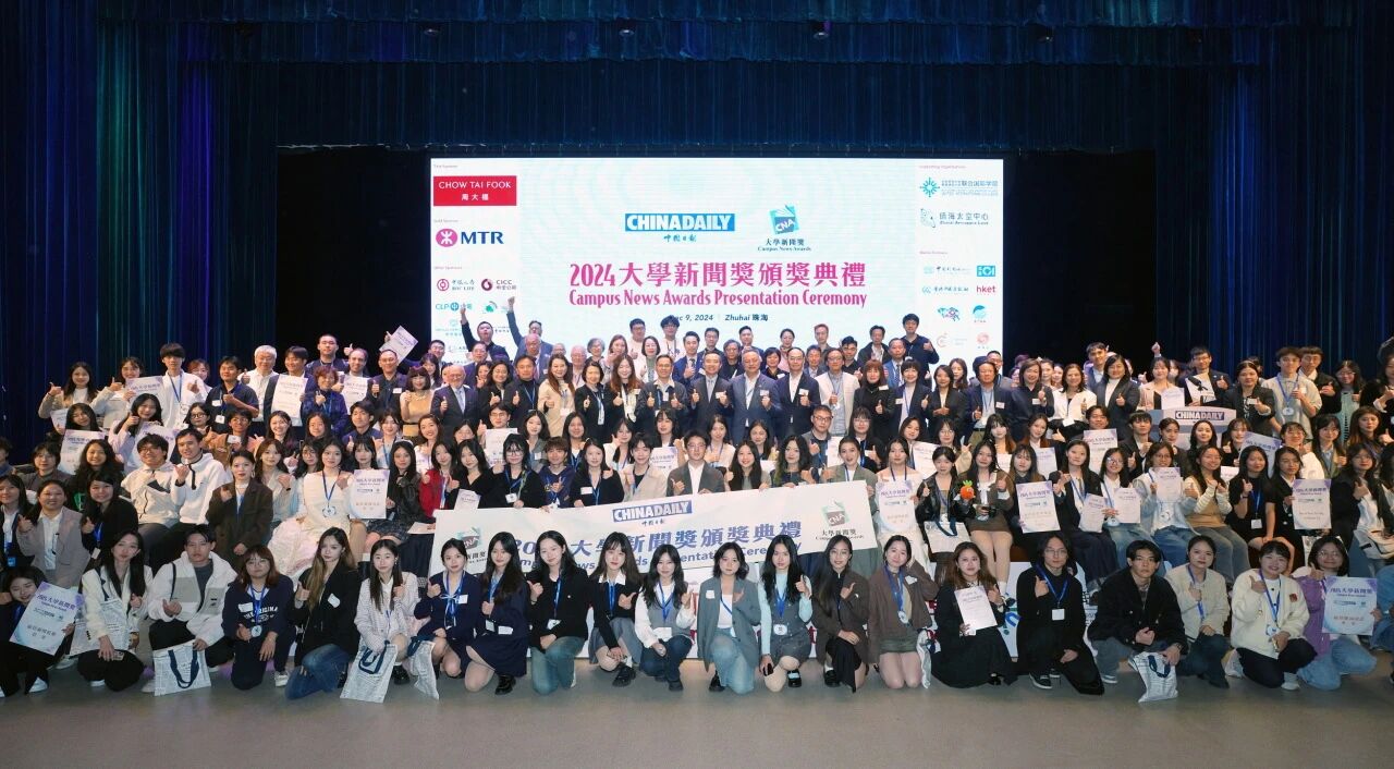Recently, the "2024 University Journalism Awards" ceremony, hosted by China Daily, was held at Beijing Normal University-Hong Kong Baptist University United International College (Zhuhai). More than 300 guests, including university faculty and students, industry experts, and media representatives, attended the ceremony. Students from our college performed exceptionally well in the competition, winning the championship in the Best News Reporting (Chinese) category, the championship in the Best News Writing (Chinese) category, and the third place in the Best Data Journalism (Chinese) category .