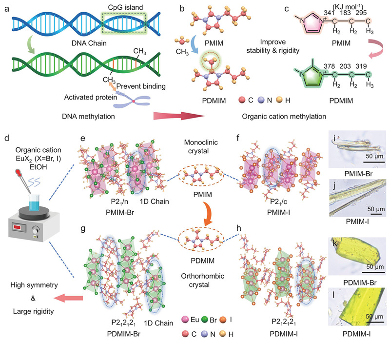 图1 有机阳离子甲基化设计策略与晶体结构演变