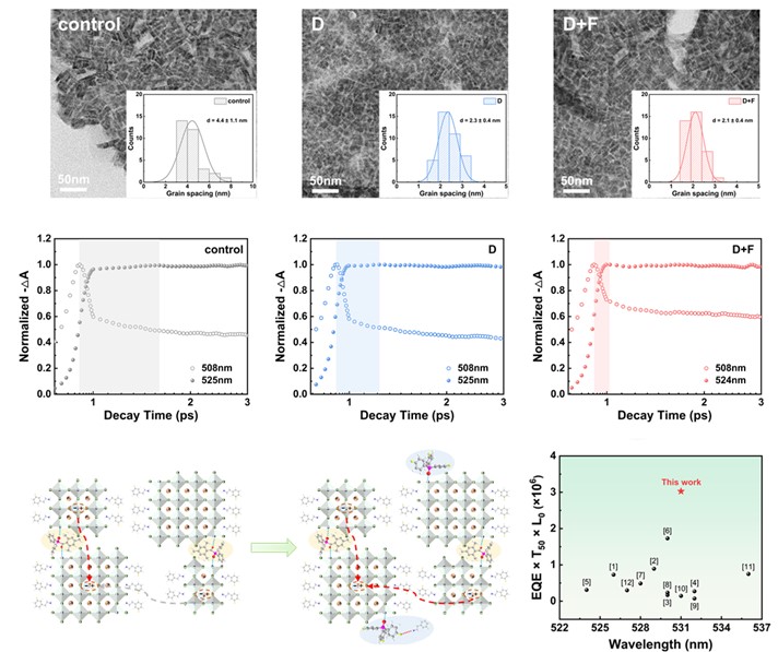 实验室马东阁教授团队:基于表面桥接与钝化协同策略实现高效稳定的纯绿光钙钛矿纳米晶发光二极管