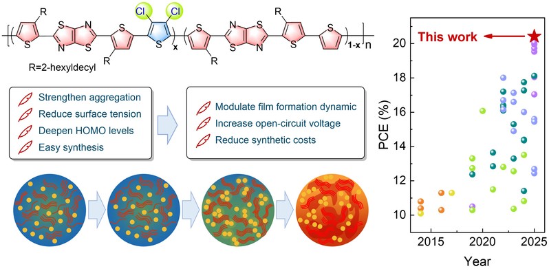 有机太阳电池因轻质、柔性及可溶液加工等优势,成为下一代光伏技术的有力候选者。然而,高性能材料往往复杂结构、成本高昂,这成为制约其产业化的关键瓶颈。线性共轭聚合物虽具有结构简单、合成便捷、成本低廉的优势,但其活性层形貌难以精准调控,器件性能始终与复杂材料体系存在差距。