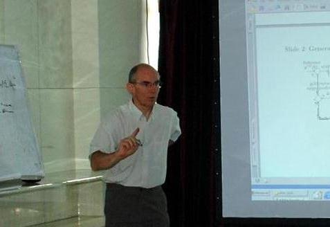 实验室师生与Jean-Pierrre Corriou教授合影 | Jean-Pierrre Corriou教授在作学术报告 |