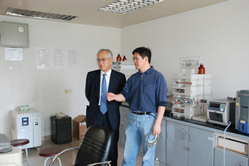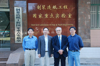 2008年11月10日,日本造纸学会会长Kunitaka Toyofuku先生应邀到实验室访问。实验室付时雨教授向Kunitaka Toyofuku教授介绍了实验室的情况,并带客人参观了实验室。