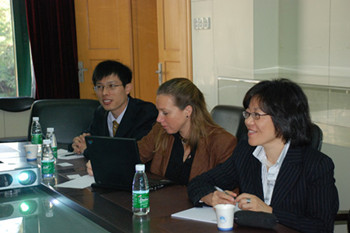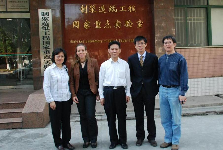 2008年11月25日,德国UPM-Kymmene, Papier GmbH &Co. KG项目经理Susanne Robkopf、芬欧汇川(常熟)研究开发有限公司主任张燕和纸张研究员梁伟应邀来实验室访问交流。实验室付时雨教授等热情接待了到访嘉宾,并带领参观了实验室。