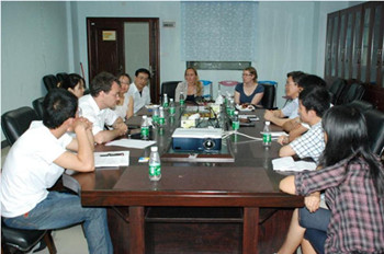 2011年6月14日上午,瑞典皇家工学院(Royal Institute of Technology in Stockholm)Prof. Gunnar Henriksson ,Mr Liming Zhang,Mr Petri Oinonen,Miss Yan Wang,Miss Kerstin Jedvert,Miss Anna Saltberg,Miss Raquel Bohn Lima等7位师生及中瑞典大学(Mid Sweden University)Prof. Per Engstrand应邀到华南理工大学制浆造纸工程国家重点实验室交流。实验室副主任付时雨教授等热情接待到访的嘉宾,并陪同参观了实验室。
