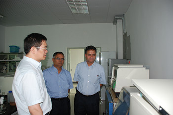 2012年10月17日上午,美国纽约州立大学ESF分校生物过程工程系Bandaru V. Ramarao教授和美国明尼苏达大学生物产品和生物系统工程系主任Shri Ramaswamy教授来我实验室访问交流。实验室副主任付时雨教授等热情接待了两位教授,并带领参观了实验室。两位教授对我实验室仪器设备和科研水平表示高度认可,并对实验室近年来承担的重大科研项目及取得的学术成果表示肯定和赞扬。