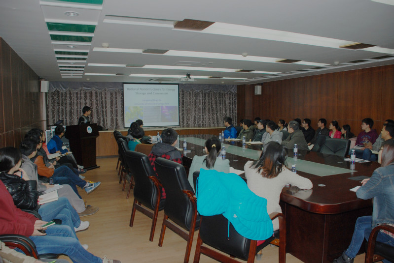 2015年1月19日,美国马里兰大学胡良兵教授来访实验室,并做了一场题为“Scalable Nanostructures for Energy Storage and Flexible Electronics(纳米结构在能源和柔性电子上的应用)”的学术报告。实验室常务副主任付时雨教授等近50名师生听取了报告会。