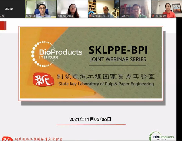2021年11月6日上午,华南理工大学制浆造纸工程国家重点实验室(英文简称SKLPPE)与加拿大英属哥伦比亚大学生物产品研究所(英文简称BPI)首期线上交流研讨会顺利召开。本期会议的主题为“多孔材料”,来自国内外37家科研院所、企业等近百人观看了此次直播。会议由我室宋涛副教授主持。