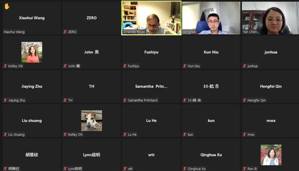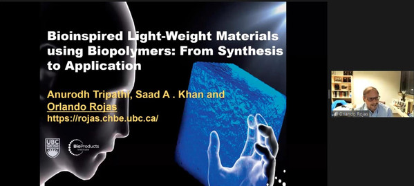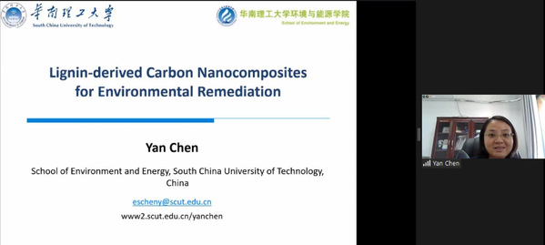 随后,加拿大英属哥伦比亚大学生物产品研究所Orlando Rojas教授以“Chiral-nematic ordered aerogels with controlled meso- and microstructures”为主题,我室陈燕教授以“Lignin-derived-carbon composites for environmental remediation”为主题,与线上嘉宾们分享交流了学术研究成果。