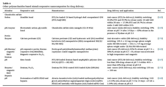 表4.其他用于药物递送的基于多糖的纳米复合材料
