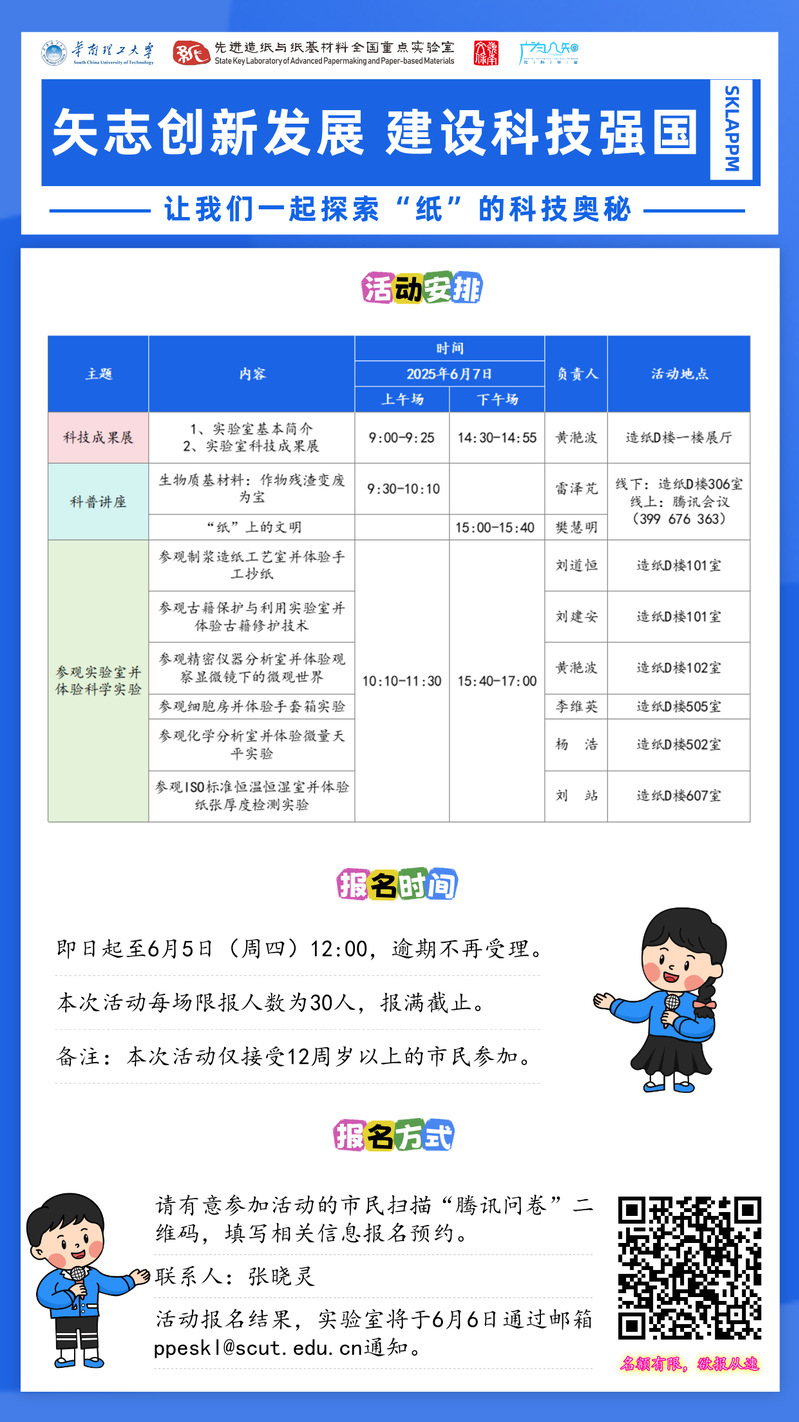 先进造纸与纸基材料全国重点实验室关于举行2025年公众开放日科普活动的通知