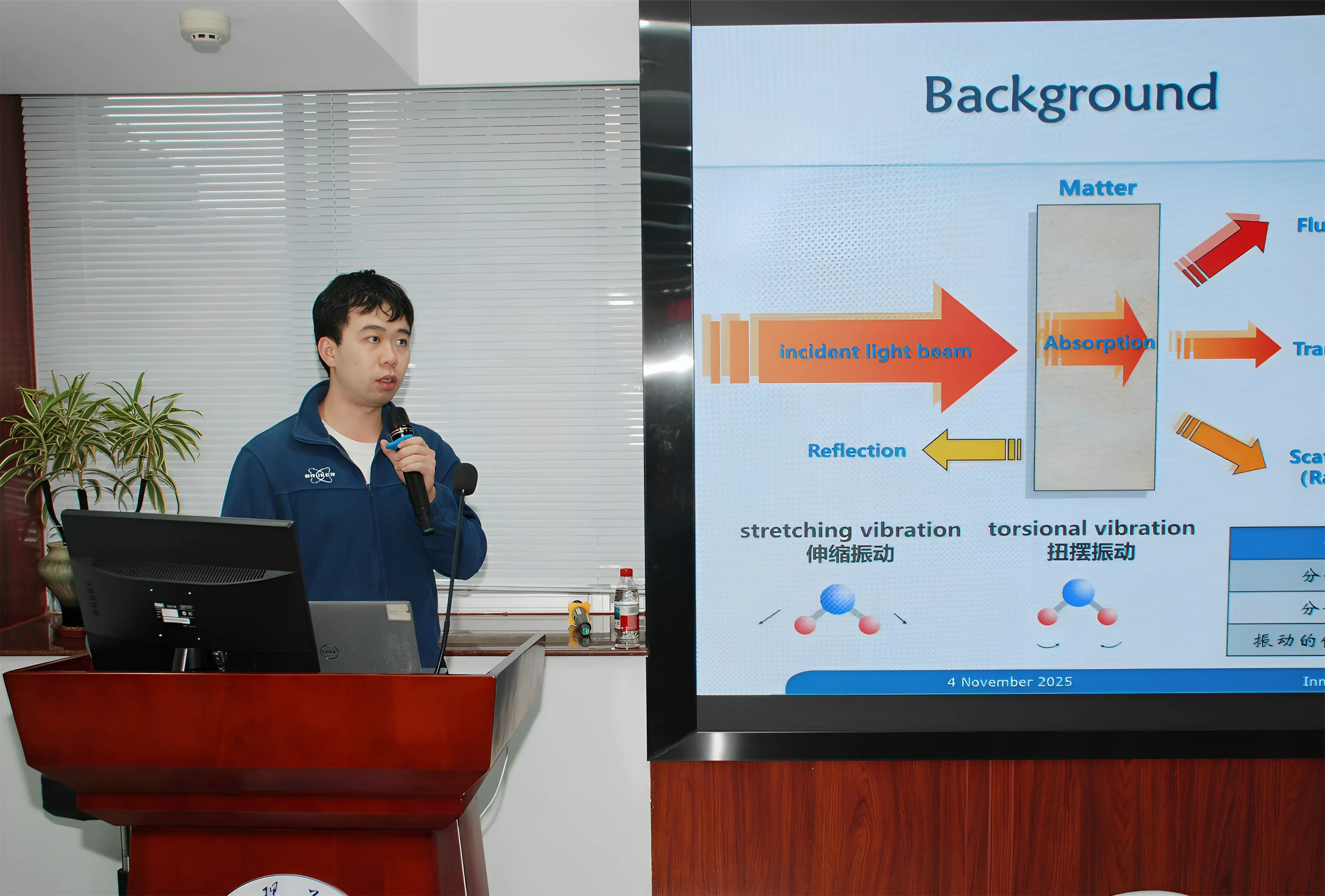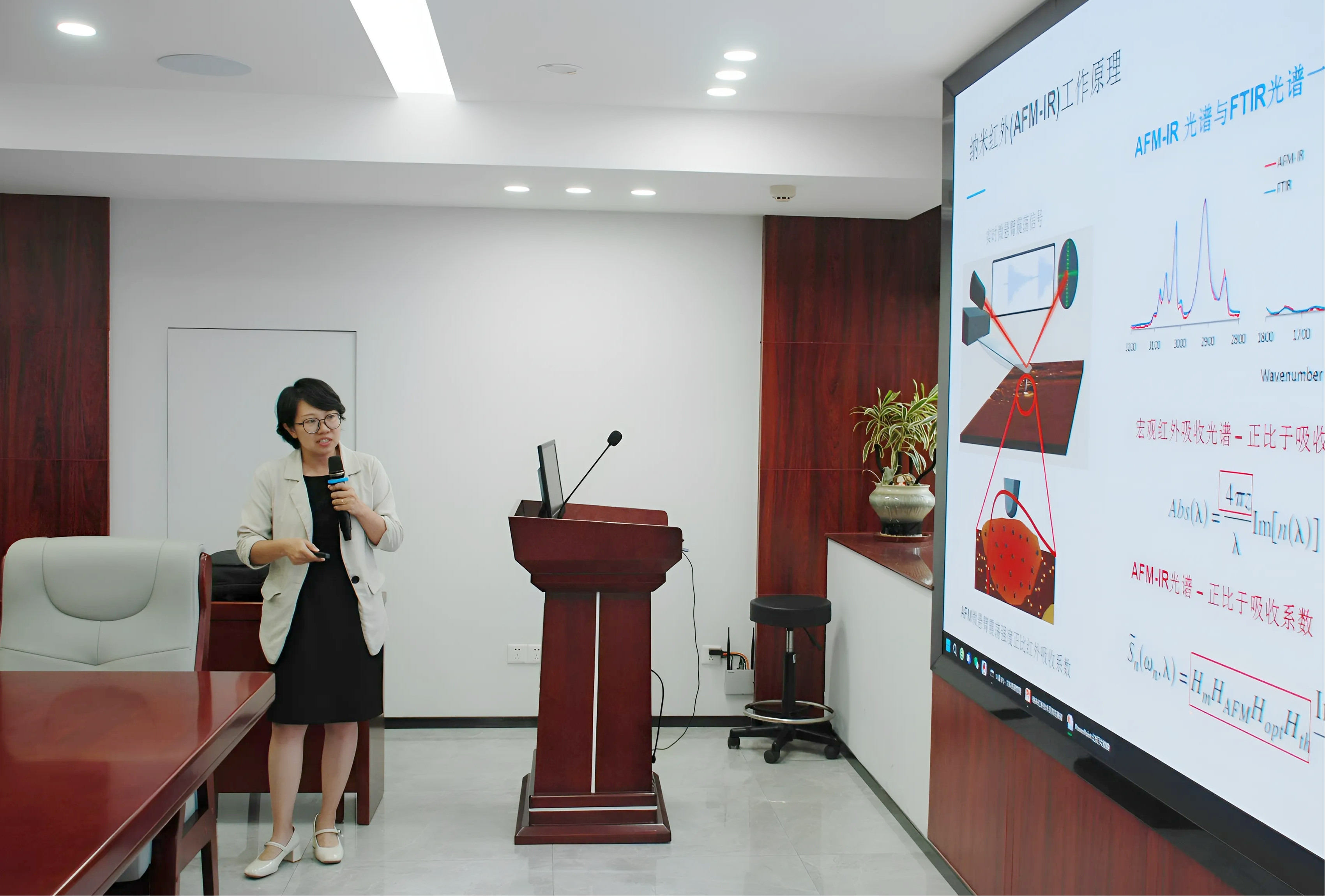 10月15日,首场培训特邀布鲁克公司应用专家魏琳琳博士,系统介绍了纳米红外技术的最新研究进展及其在纤维素、木质素以及新能源材料化学状态、结构变化等领域的应用案例。同时,结合我室NanoIR3s设备开展了样品制备指导、实操演示与现场交流,提升了参会人员的设备使用能力。