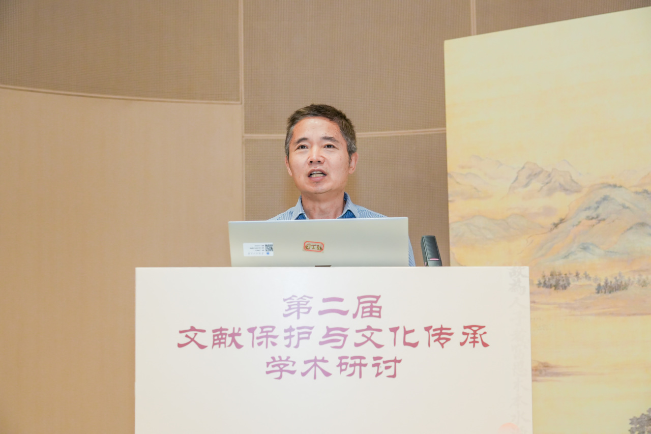中山大学教授、国家文化遗产与文化发展研究院院长程焕文以《文化自觉:文献保护与文化传承的根本》为题作主旨报告,分析了文献保护的三重维度与文化自觉。他指出,对纸质文献的保护要从原生性保护、再生性保护、传承性保护三个维度做起。原生性保护,即对文献自身的保护,使其免于岁月、战争、灾害以及管理者的疏忽等原因造成的损坏;再生性保护,即延续文献的生命周期,通过改进造纸工艺、改善馆藏条件等避免文献的历史价值、文物价值和文化价值灭失;传承性保护,即培养广大民众的文化自觉,让广大民众都具备文献保护的意识,文化、文献的保护不再是一小部分人的坚持,把“敬惜字纸”的优秀传统重新接续起来,更好传承我们的优秀文化。