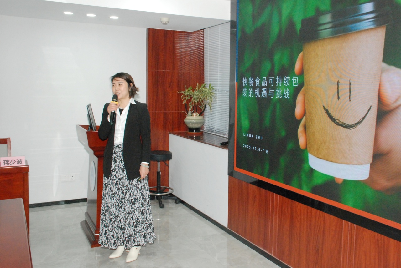 麦当劳tms公司代表朱红梅在《快餐食品可持续包装的机遇和挑战》报告中,系统阐述了当前可持续包装在新材料供应链、质量控制等方面面临的主要挑战与机遇,并结合具体案例分享了tms在可持续包装质量管控、食品安全与合规管理方面的实践经验。