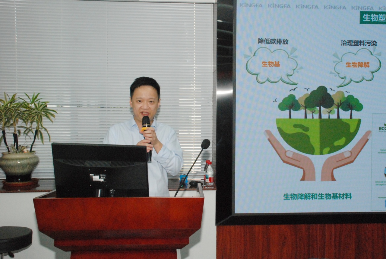 珠海金发生物材料有限公司技术总经理付学俊以《金发生物绿色包装方案及应用实践》为题,系统介绍生物塑料在治理塑料污染和降低碳排放方面的作用。报告重点展示公司基于生物基单体的聚酯产品布局,以及在衣、食、行、用等领域的创新应用实践。