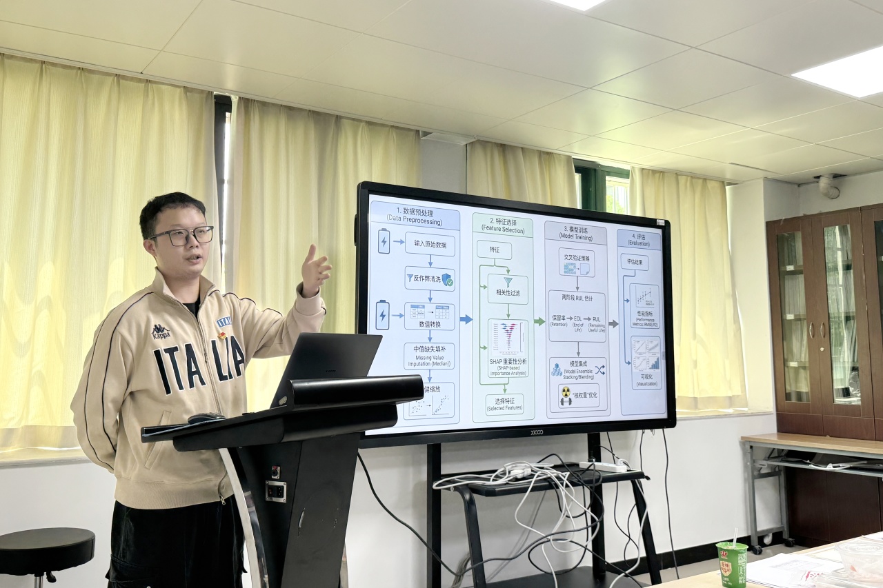 两位博士的学术分享引发了现场师生的热烈交流。与会人员围绕银纳米颗粒分散性、复合膜制备成本、银纳米团簇荧光稳定性,以及运用机器学习与深度学习开展电池寿命预测、提升预测精度等关键技术问题展开深入研讨,现场讨论氛围十分热烈。