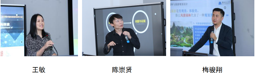 同济大学建筑与城市规划学院景观学系王敏副教授、华南农业大学林学与风景园林学院陈崇贤副教授、桂林理工大学旅游与风景园林学院梅骏翔老师、华南理工大学建筑学院风景园林系翁奕城老师、西安建筑科技大学建筑学院风景园林系王丁冉老师、光辉城市公司创始人兼CEO宋晓宇先生、北京林业大学园林学院郭巍教授、哈尔滨工业大学建筑学院景观系朱逊副教授、郑州大学建筑学院风景园林系系主任白丹老师、华侨大学建筑学院陈芬芳老师、广州美术学院建筑艺术设计学院何伟老师及清华大学建筑学院景观学系博士生常湘琦在内的12位教育工作者及专家学者先后发表了专题演讲。