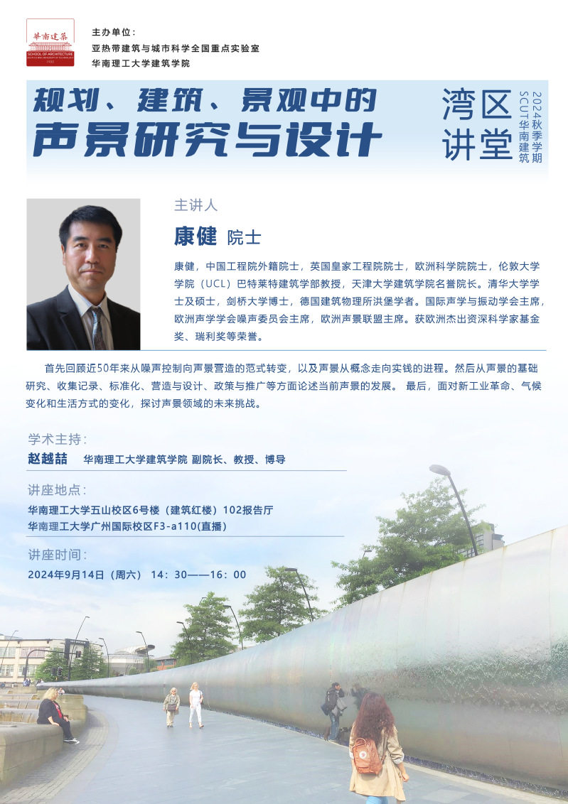 湾区讲堂:规划、建筑、景观中的声景研究与设计 2024-09-14 文章来源:未知浏览次数:11 分享到: