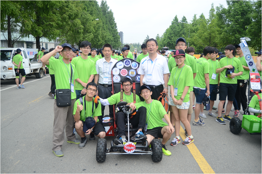 该活动邀请了来自韩国、中国、日本、泰国、印度的16所知名高校的90余名本科学生参加,我校作为唯一的一所受邀的中国大学参加了本次活动。活动是由来自不同国家的学生混编为6支工程设计团队,各团队在为期1周的时间内,独立完成一辆电动车从概念设计、详细设计与仿真优化、机械制造与性能评测的完整设计制造流程以及三场方案论证答辩。