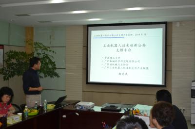 2014年10月14日,广州市科信局林爱华调研员一行对我院拟建的“广州市工业机器人技术创新公共支撑平台”进行考察,我校科技处马卫华处长、付晔副处长等陪同考察。该平台由我院牵头,联合广州机械科学研究院有限公司、广东省机械行业协会和广州工业机器人制造和应用产业联盟共同设建。考察过程中张宪民院长详细介绍了工业机器人技术创新公共支撑平台的产业背景,平台定位、建设内容和建设目标等。李琳副院长等项目组成员参与考察活动。