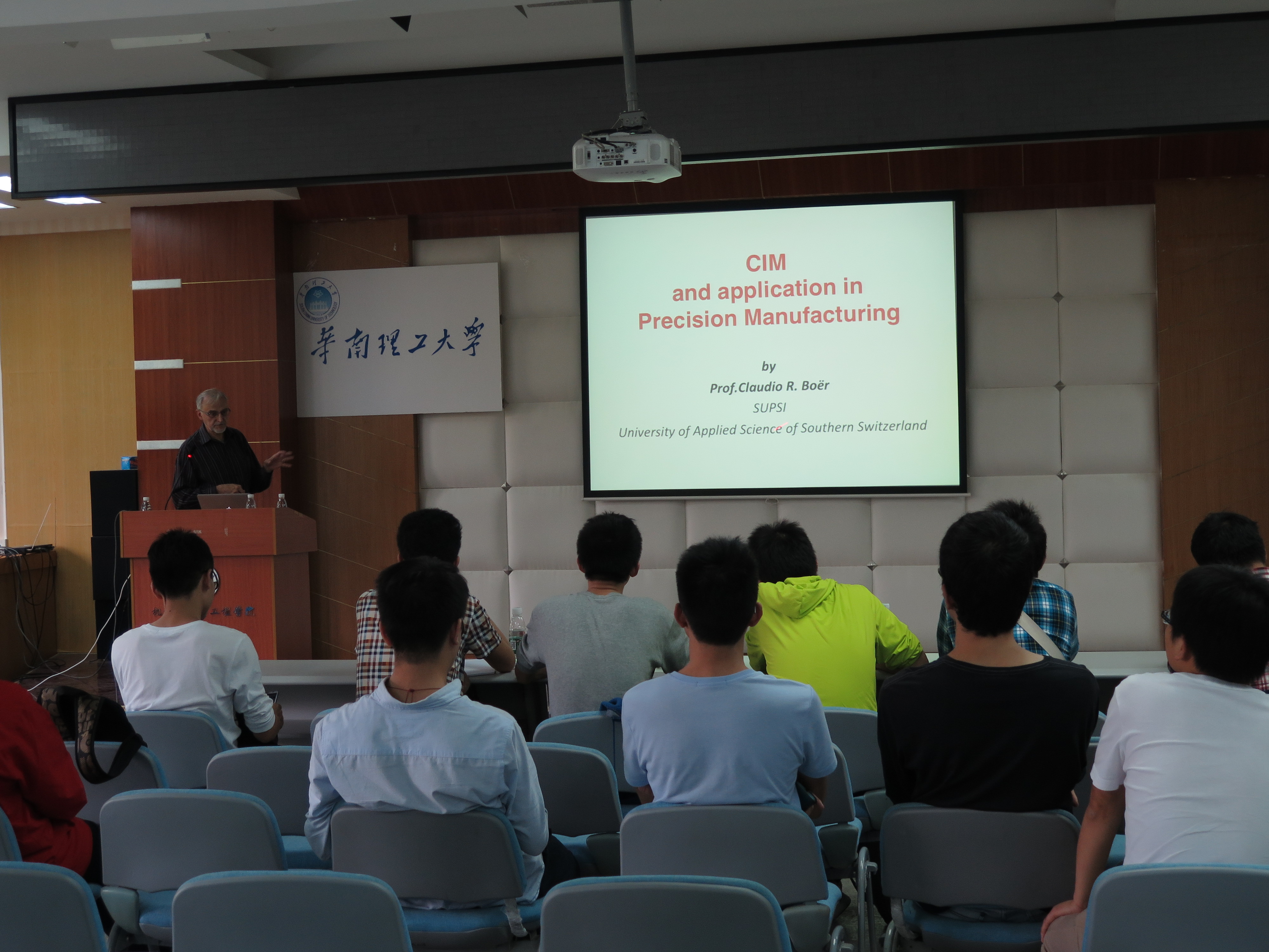 2014年11月27日下午,瑞士南方应用技术大学(SUPSI)副校长Claudio R. Boër教授为我院师生召开了一场题为:CIM andapplication in Precision Manufacturing的学术报告会。