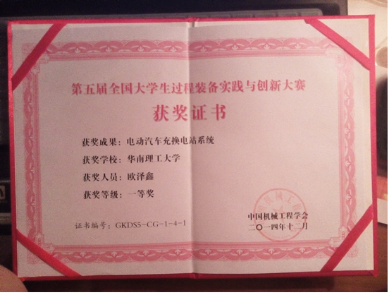 12月19日—12月21日,第五届全国大学生“过程装备实践与创新大学”颁奖典礼在南京工业大学浦口校区举行,华南理工大学两队表现突出,其中作品“电动汽车充换电站系统” 凭借扎实的专业基础知识和稳定的临场发挥力压群雄,通过答辩和晋级最终斩获本次大赛一等奖的殊荣。另一队以作品“新一代碳纤维多功能自行车的设计与研究”荣获大赛三等奖,并且机械与汽车工程学院张东老师荣获“优秀指导教师”的称号!