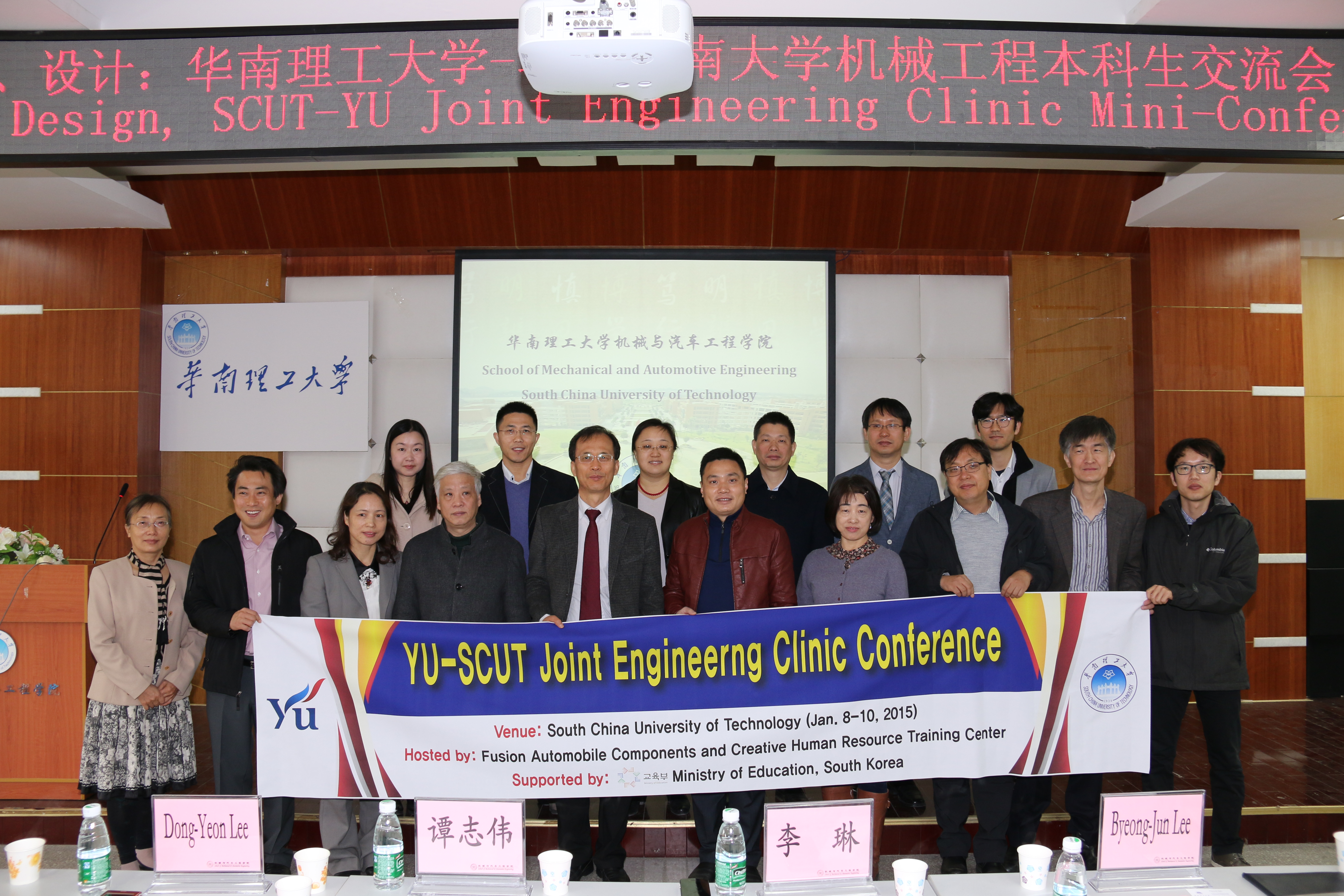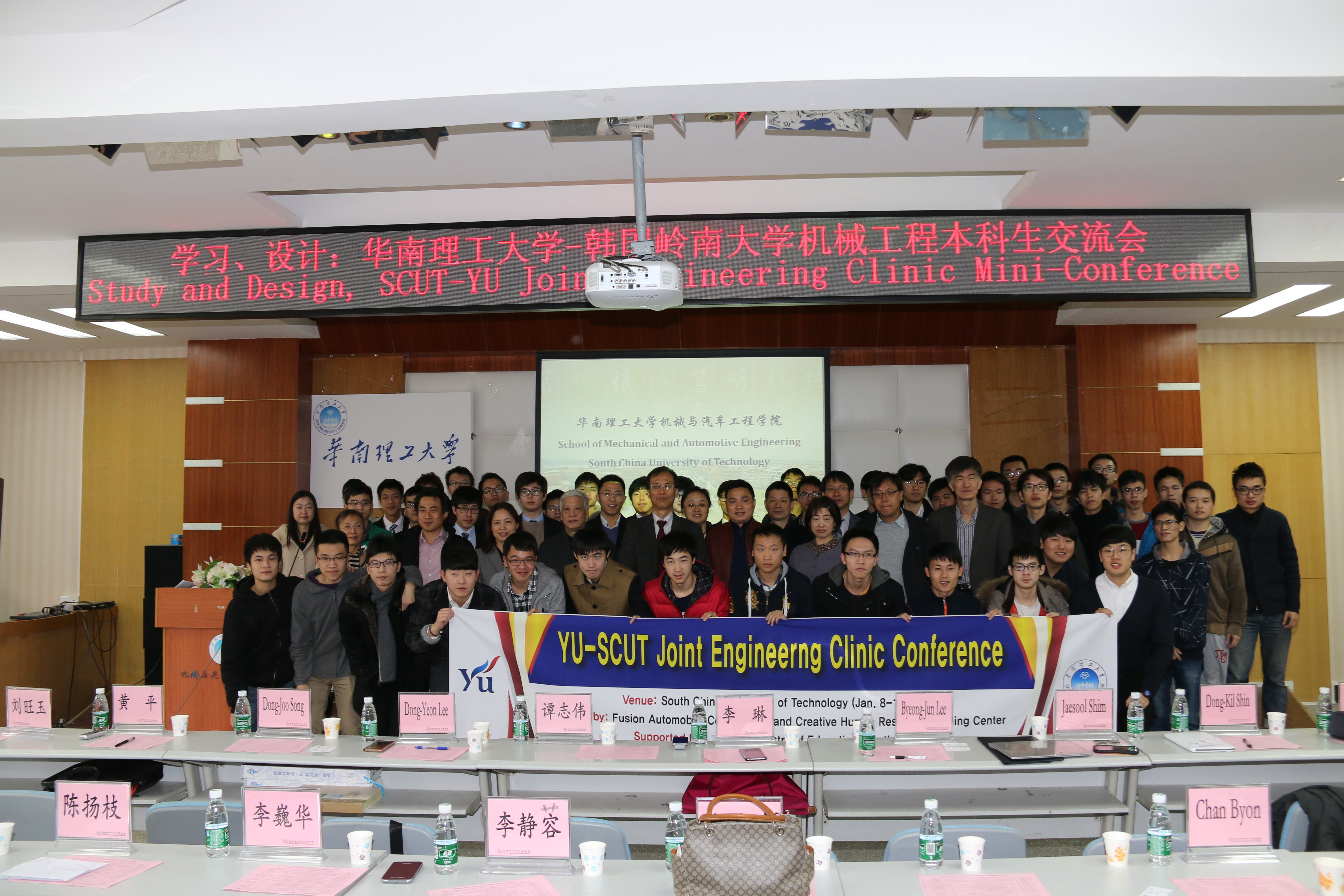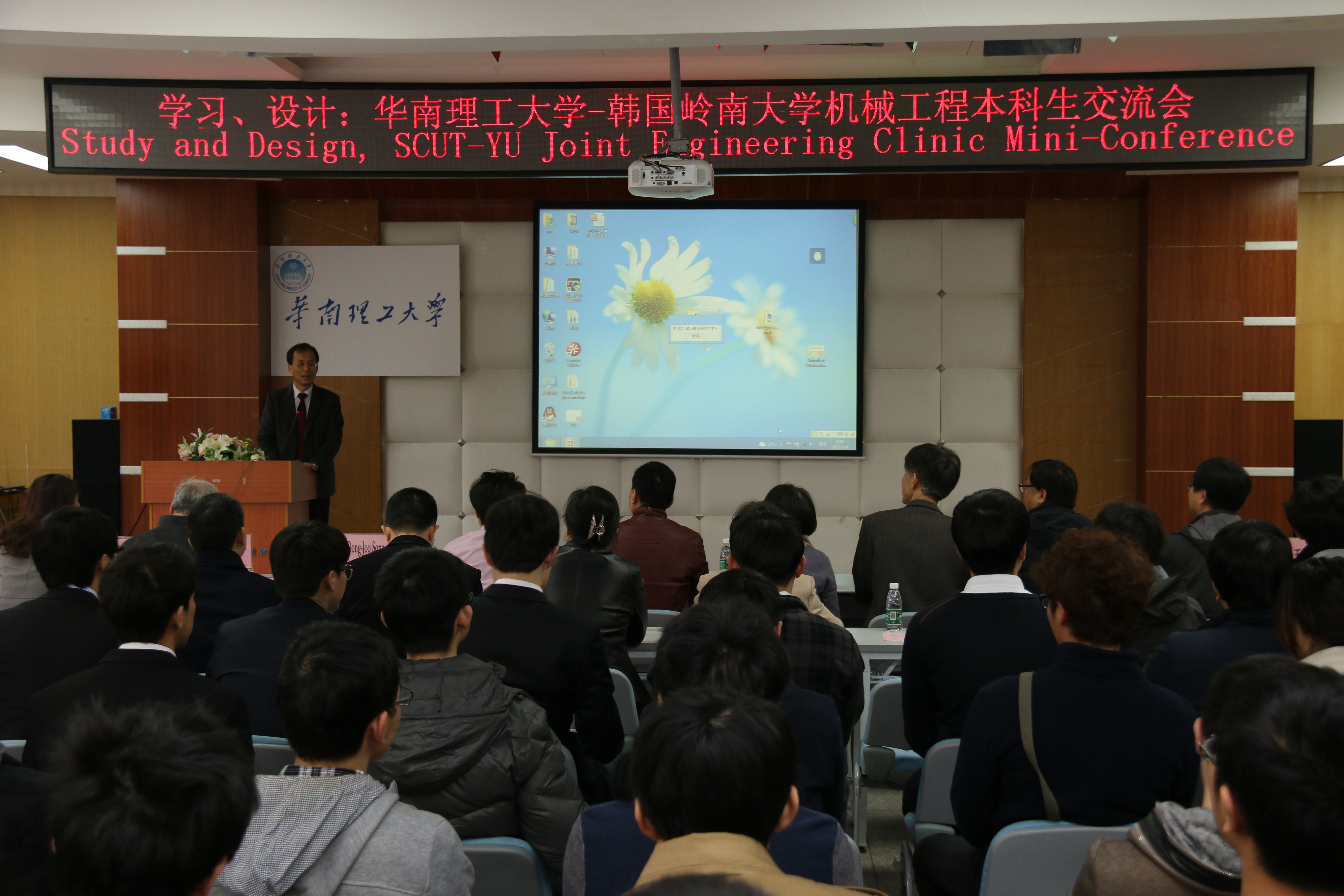 2015年1月9号上午,一场由中韩机械工程专业的本科生唱主角的创新设计交流会(Study andDesign, SCUT-YU Joint Engineering Clinic Mini-Conference)在机械与汽车工程学院29号楼会议室举行。双方共派出16名学生进行了项目成果介绍与答辩,内容涵盖机构、机械结构、复合材料制备与性能、工程中的热问题、小车整车设计、机器人等众多领域。中韩双方共14名教授聆听了学生的介绍与答辩,师生们就感兴趣的问题进行了热烈的讨论。