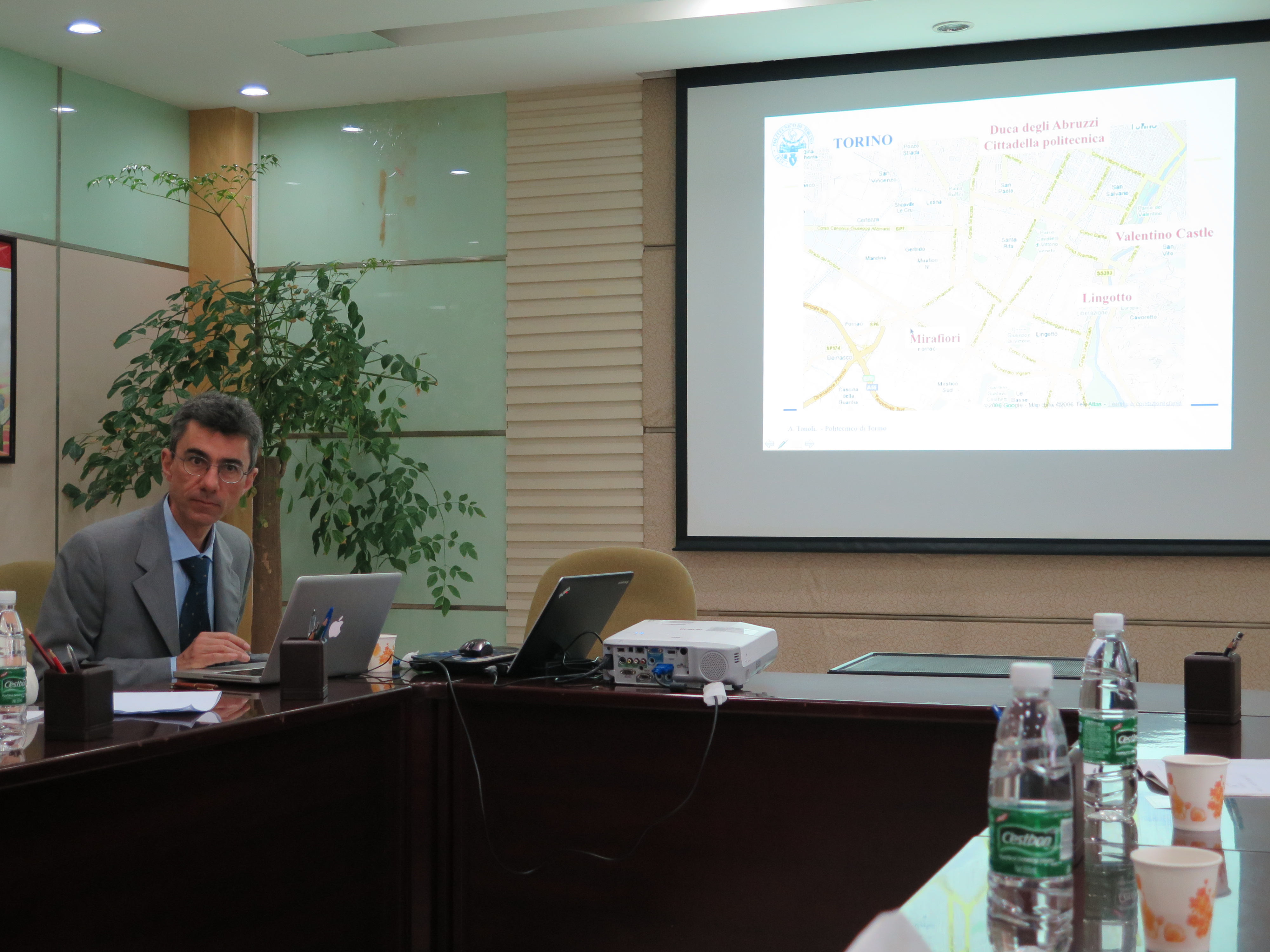会谈中,Andrea Tonoli教授向我院代表介绍了意大利都灵理工大学的基本情况,以及该校与中国高校开展的各种合作,并表达了与我院合作的强烈意愿。经协商,双方同意以学生交流项目和教师的科研合作作为合作的起点。会后,Andrea Tonoli教授还参观了我院汽车工程系的实验室。