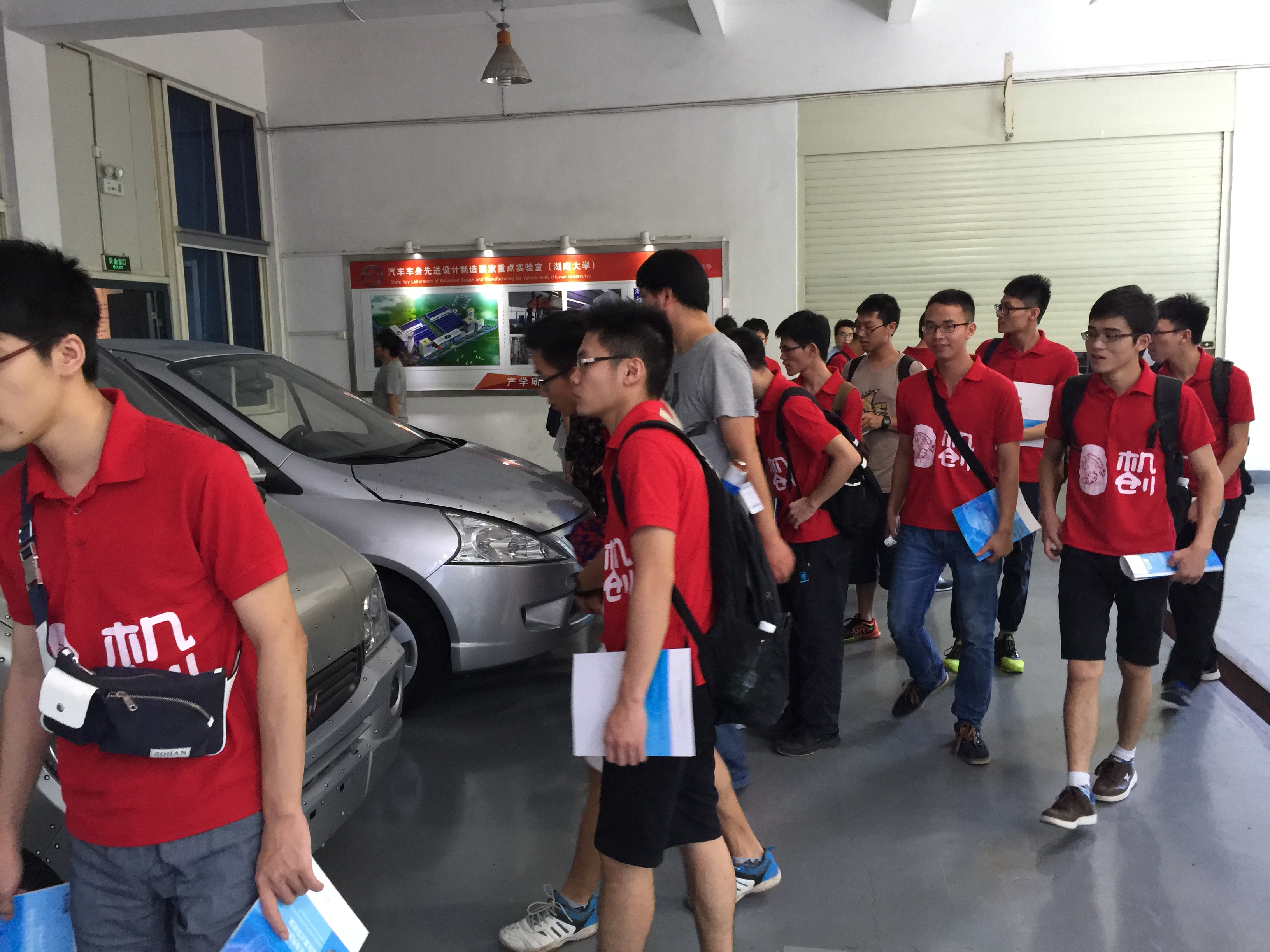 随后,学生们认真参观了湖南大学汽车车身先进设计制造国家重点实验室,目睹了新型的菱形汽车结构,还欣赏到使用立式五轴数控铣床加工车身的先进加工过程。其中,先进的汽车试验设备和高端的加工工艺吸引了大部分学生的兴趣,大家深受启发,畅所欲言,同实验员热情交谈。