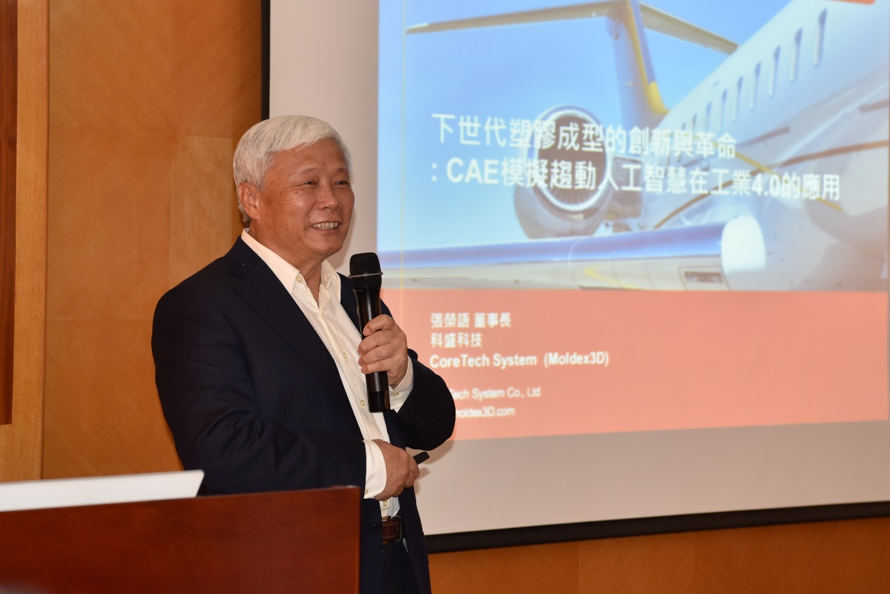 基地揭牌仪式后,科盛科技股份有限公司董事长张荣语博士作题为“下时代塑料成型的创新与革命:CAE模拟驱动人工智慧在工业4.0中的应用”的演讲,向大家介绍塑料成型CAE中流变学、数值模拟等基本原理及研究前沿动态,Moldex3D软件的功能及其在塑料成型中应用的成功案例,并详细地介绍了Modex3D在未来工业智能化、信息化、自动化中的应用,深入浅出地指出了未来注塑行业CAE的发展方向。