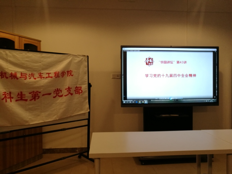 为学习贯彻十九届四中全会精神,机械与汽车工程学院本科生第一党支部于2019年12月8日集体观看学习《十九届四中全会精神宣讲报告》,党员们表示通过学习更加坚定了对党绝对忠诚、对总书记绝对拥护的政治自信;对坚持走好中国特色社会主义道路的道路自信;对统筹推进“四个全面”战略布局的发展自信。
