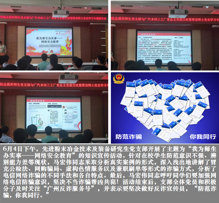【学史力行】先进粉末冶金技术及装备研究生党支部开展“我为师生办实事——网络安全教育”知识宣传活动