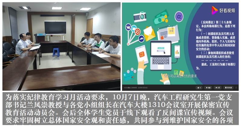 筑牢安全防线 汽车工程研究生第一党支部开展保密和反间谍宣传教育活动