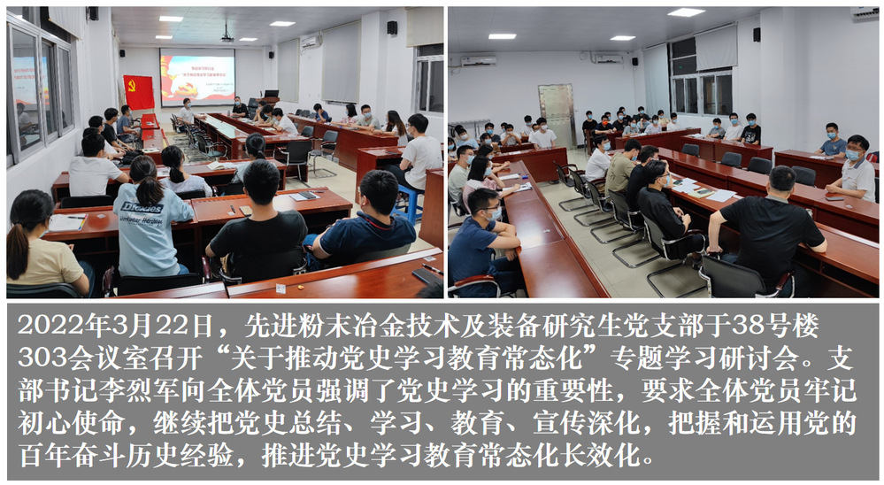 先进粉末冶金技术及装备研究生党支部召开“关于推动党史学习教育常态化”专题学习研讨会