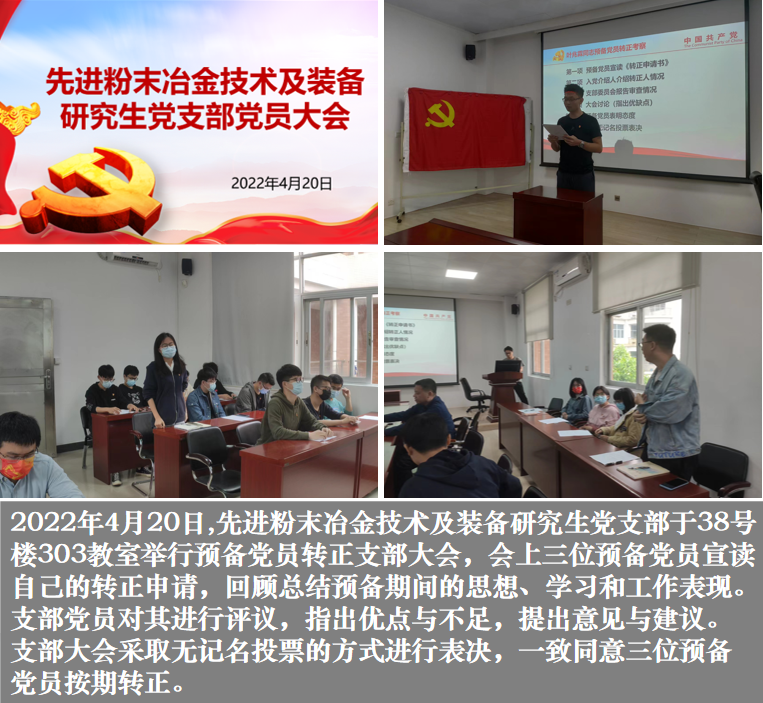 先进粉末冶金技术及装备研究生党支部举行预备党员转正支部大会