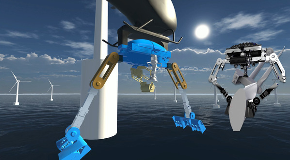 ·为解决海上强风环境下风电叶片裂纹修复难题,项目团队设计了可折叠式机器人平台。利用风能实现吸附增强,通过流线型的底盘结构将海风转化为贴附力,采用力控柔顺Delta打磨臂与多腔快速换料机构,突破传统人工局限,实现裂纹的高一致性打磨与复合修复。该设计具备全流程自动化、环境适应性强、维护效率高等优势。