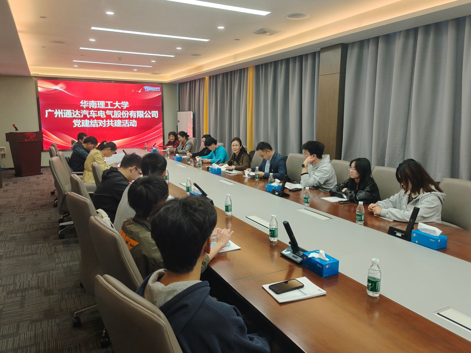 参观结束后,双方在公司会议室开展交流座谈。会上,全体党员共同学习了党的二十届四中全会精神,重点围绕发展新质生产力、推动高质量发展等议题进行深入学习和研讨。大家结合在通达电气的所见所感,就技术创新、人才培养、产学研结合等话题展开了热烈讨论。