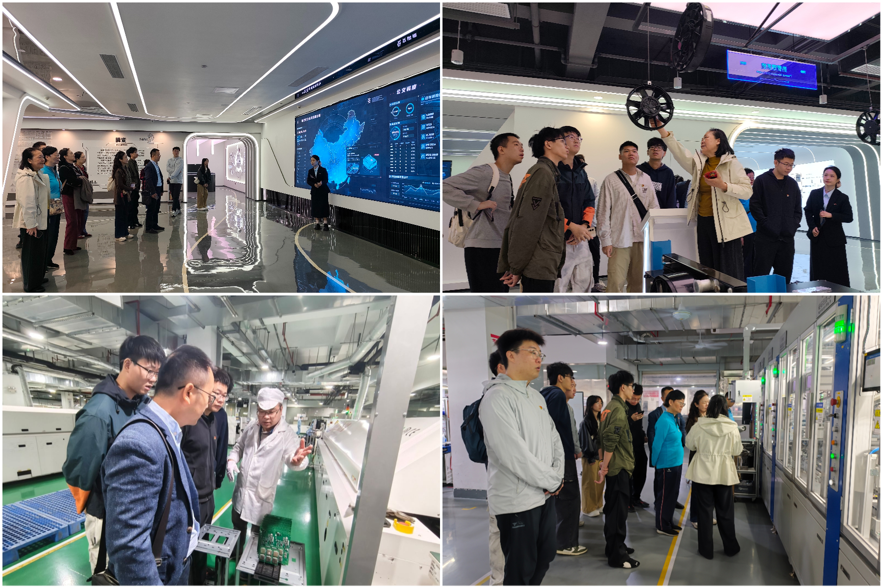 活动当日,在通达电气公司董事长、学院汽车系陈丽娜老师的热情接待下,党员们首先参观了公司的产品展厅与现代化生产车间。展厅内,一系列车载智能终端、综合信息管理系统及配套电气产品,展现了企业在汽车电子领域的深厚积累与创新能力。生产车间里,高度自动化的生产线、严谨的工艺流程和员工专注的工作状态,让大家直观感受到了科技赋能下制造业的飞速发展与“中国智造”的独特魅力。退休老党员们结合自身丰富的阅历,对比今昔,感慨万千;研究生党员们则对前沿技术在实际生产中的应用表现出浓厚兴趣,不时与企业技术人员交流探讨。