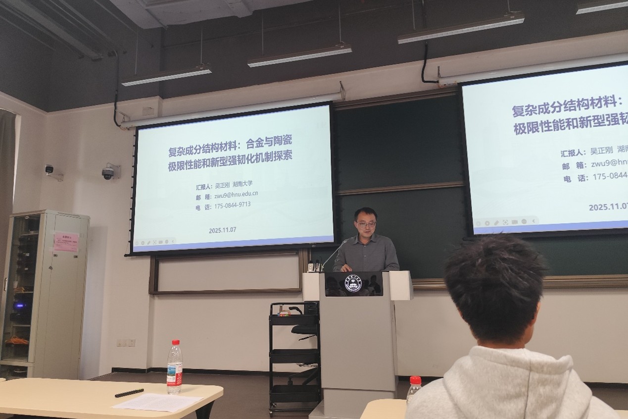 近日,湖南大学材料科学与工程学院教授、副院长吴正刚应邀到访学校,在国际校区为我院师生带来了一场题为“高熵结构材料:合金与陶瓷”的前沿学术报告。报告会由我院杨超老师主持。