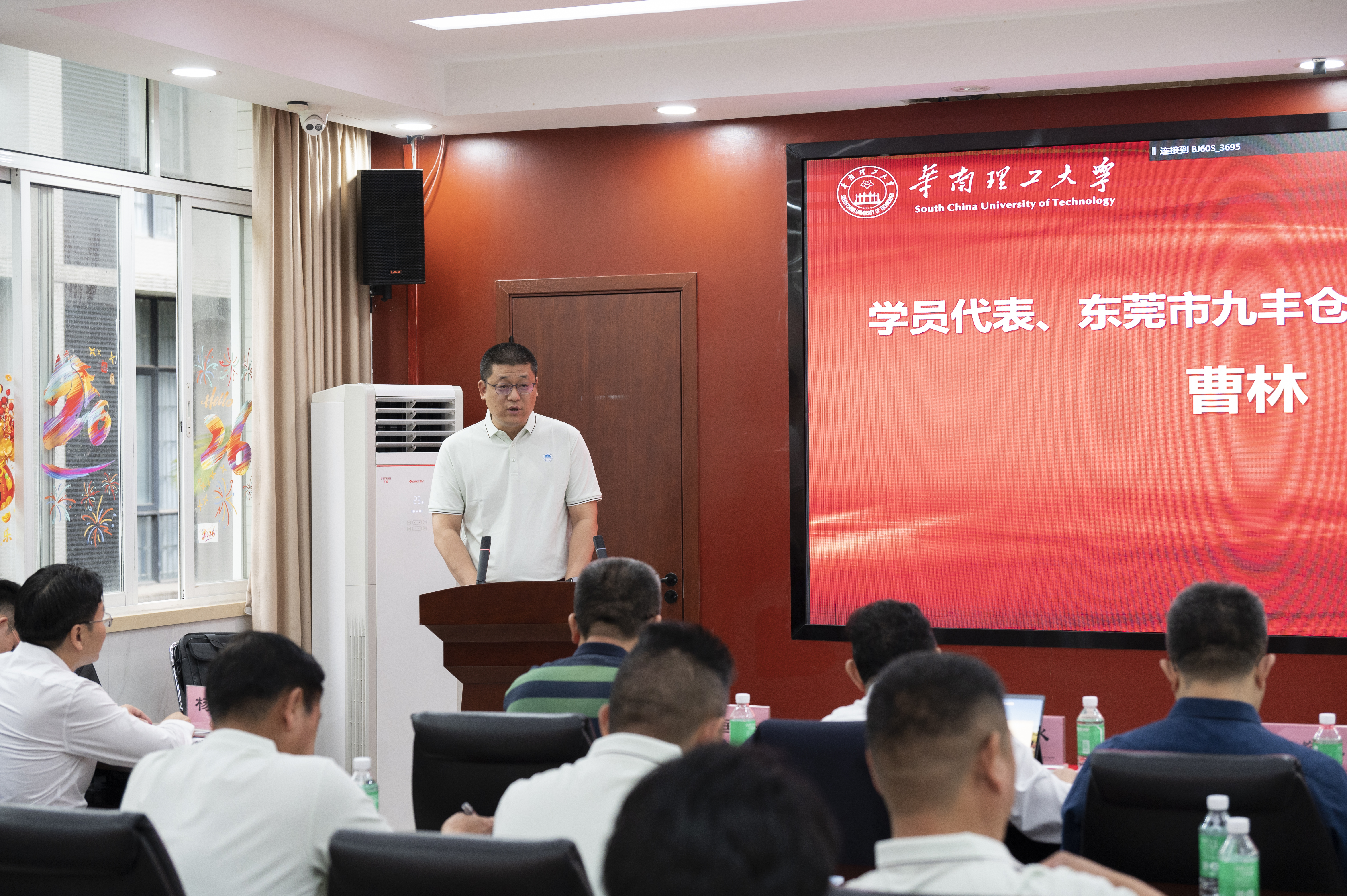 九峰仓储服务有限公司总经理曹林作为学员代表发言。他表示,安全是每一位安全管理者肩负的首要责任。他代表全体学员提出三点学习态度:坚守初心,保持对安全工作的热爱;勇于创新,持续提升安全管理水平;团结协作,与同行共同进步,为安全学科发展贡献力量。