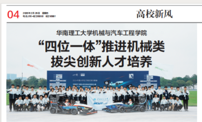 中国教育报:华南理工大学机械与汽车工程学院“四位一体"推进机械类拔尖创新人才培养